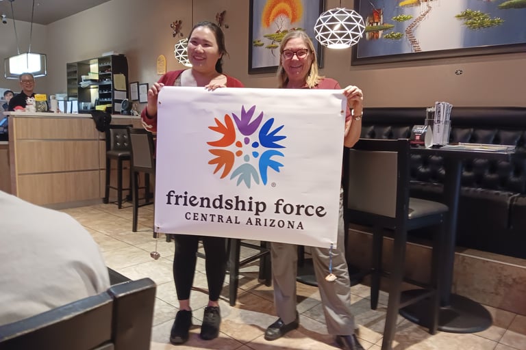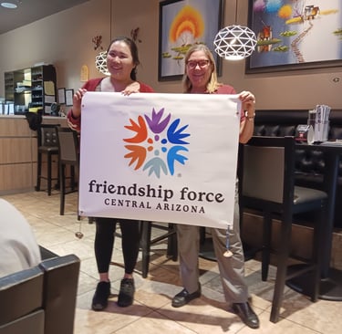 We conduct monthly social gatherings for Friendship Force Central Arizona members to get to know each other through “FFCAZ 4 at 4” — food, fun and getting to know each other on the 4th day of the month at 4 o’clock. There is a brief update on journeys and activities. We meet at different local restaurants offering international food.